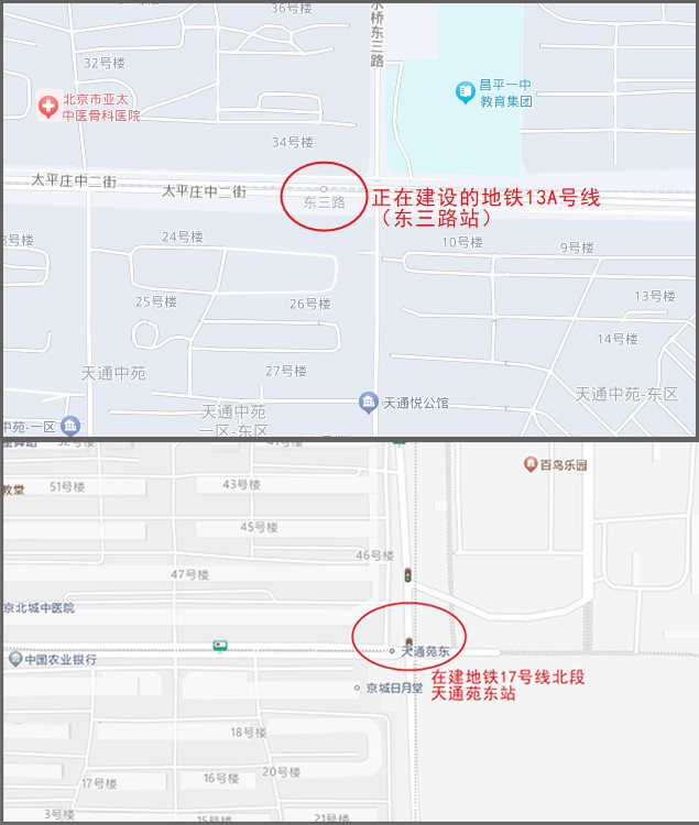 正在修建的两个地铁站