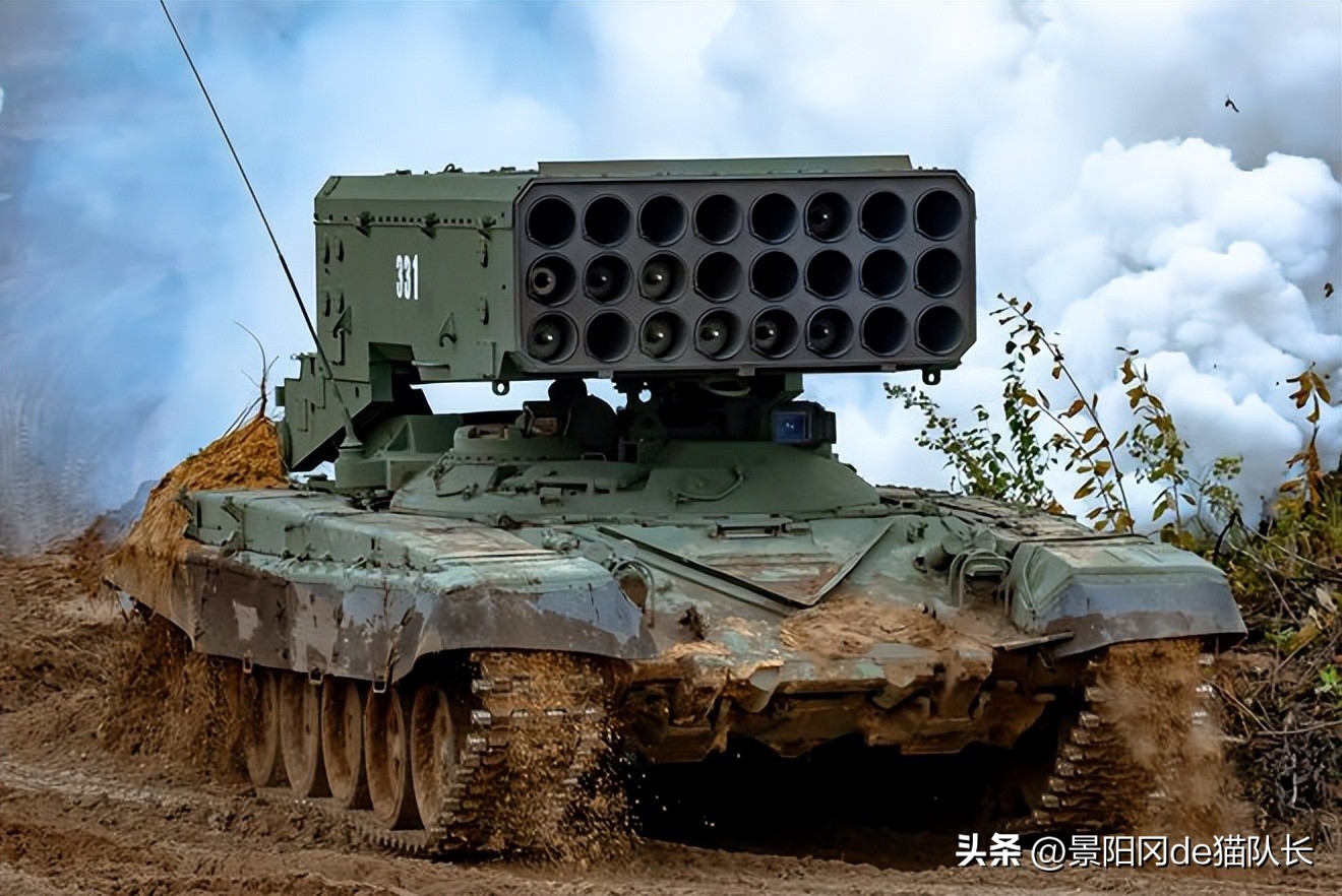 另外还装备50辆TOS-1喷火坦克,俄罗斯出口武器,战斗全重46吨,安装了由瞄准具、测距仪、弹道计算机和稳定器组成的精密火控系统,主要武器为24管220毫米火箭发射器,一台就可以覆盖4万平米的区域,正常射程6千米,最大射程15公里。