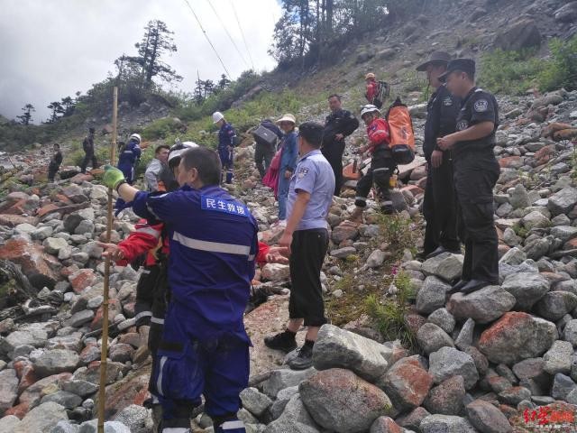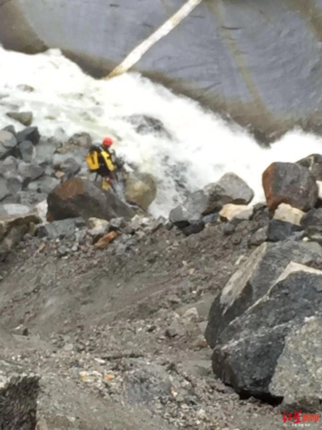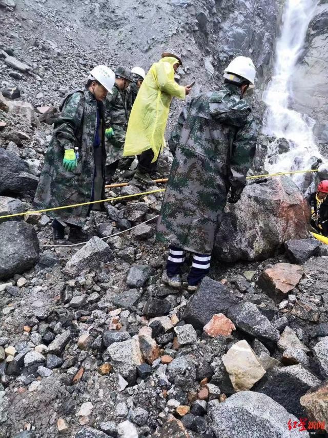 在昨天的搜寻中,小温父亲在景区工作人员带领下前往临近冰川的位置,不慎踩空左脚受伤。