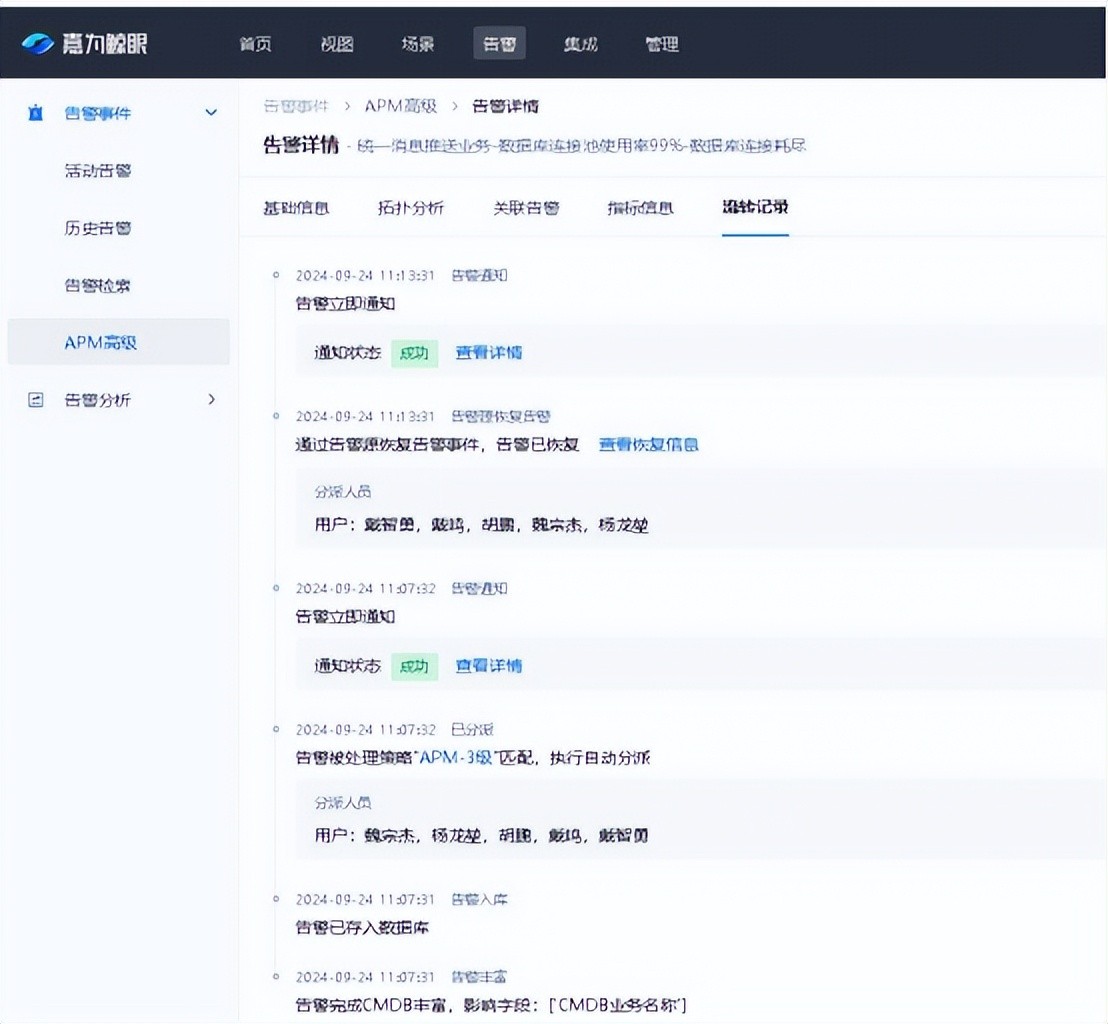 智能告警系统通过自动监测业务性能和分析历史数据,帮助银行迅速反应潜在问题。使得运维团队能够在问题发生之前识别风险,降低业务中断的可能性。系统能够实时监测关键指标,一旦发现异常,立即触发告警,指定相关责任人处理。此外,智能系统还能基于历史数据进行故障趋势预测,从而提前采取措施。通过智能告警与自动化运维,显著提升了系统的稳定性和安全性,为客户提供更可靠的金融服务。