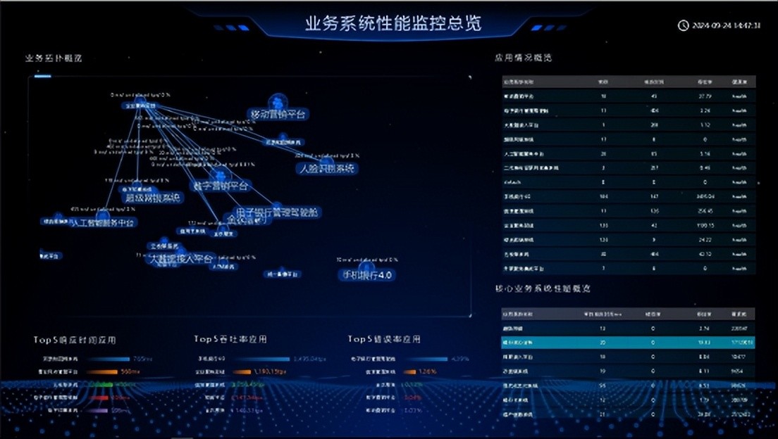 通过整合全栈监控数据,行内运维人员借助智慧大屏及可视化报表,直观掌握系统状态,为应用系统性能优化与数字化发展提供强大的决策支持。