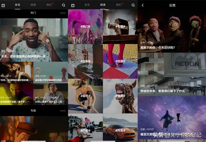 一个汇集国内外各种类目下创意视频的APP。
