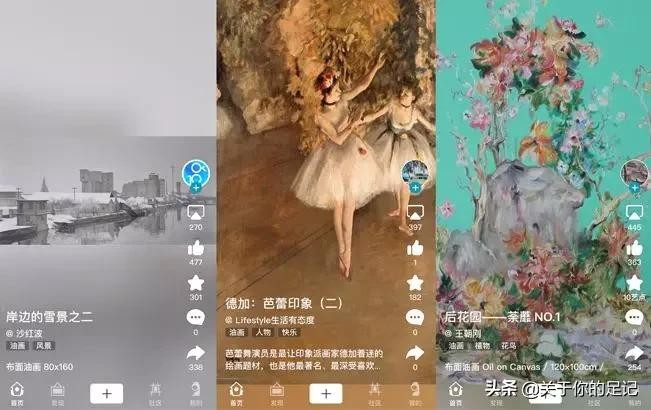 里面有各种类型画作,界面形式和抖音类似。