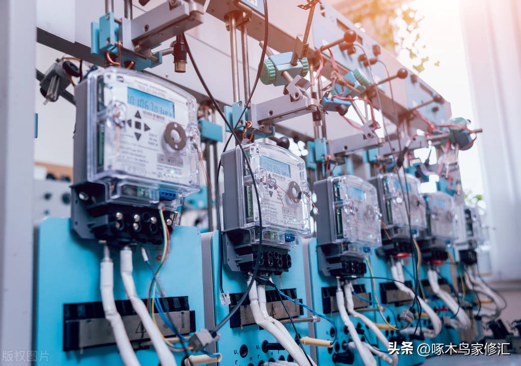 电气面板、电表和断路器。Electrical panel, electric meter and