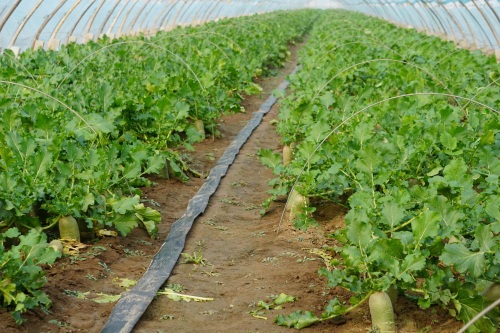 该公司负责人于伟忠对记者说,“我们主要做精品萝卜。”3000亩的面积大棚种植与露天种植的比例是2:1。“露天种植的萝卜种的稍早一点,霜降前就基本收完了,经过分类,直接运到恒温库。大棚种植的能晚收20天左右。一般能销售到来年的二三月份。再往后,随着萝卜的水分流失,就会影响品质。”