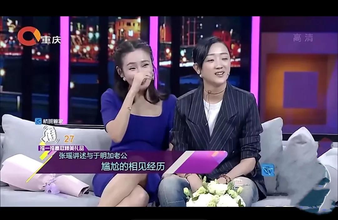 于明加的好友张瑶还在节目里自曝与于明加老公第一次见面的尴尬场面: 去于明加家里做客,于明加告诉张瑶自己老公一会儿就要回来了,张瑶说,正好啊,让我看看你老公长什么样,顺便一起聊聊天嘛!结果没想到这人这么严肃,就进屋的时候说了句你好,打了个招呼,然后径直去了女儿的房间,从女儿房间出来后又去了另一个房间,然后出来直接去了浴室开始放洗澡水,张瑶说我好尴尬,这个时候我觉得我该走了,再不走一会人家要出来赶我走了!于明加听完大笑但也不忘替老公打圆场: 我老公本来话就少,平常在家都是以他为主,我陪着他,今天陪了张瑶一天,他可能吃醋了吧!