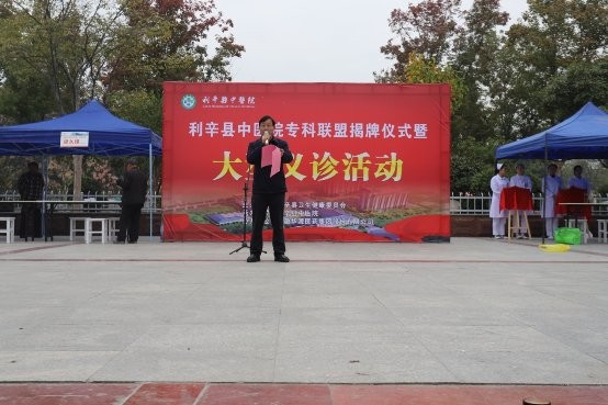 活动仪式由中医院副院长江威威主持,中医院院长刘勇致欢迎辞。刘勇代表中医院全体员工对远道而来参加专科联盟揭牌仪式及大型义诊活动的各级领导、医生表示热烈欢迎。他在致辞中表示,自2019年1月,利辛县中医药与蚌埠医学院第一附属医院神经外科签订了专科联盟合作协议后。9月份利辛县中医院又与安徽省胸科医院签订了紧密医联体合作协议,胸科医院对利辛县中医院肺病科进行重点帮扶。我们相信,利辛县中医院与蚌埠医学院第一附属医院、安徽省胸科医院的紧密合作,推行专科联盟建设,将会为利辛县人民带来更加优质的医疗服务,为利辛县的医疗行业注入新的活力。