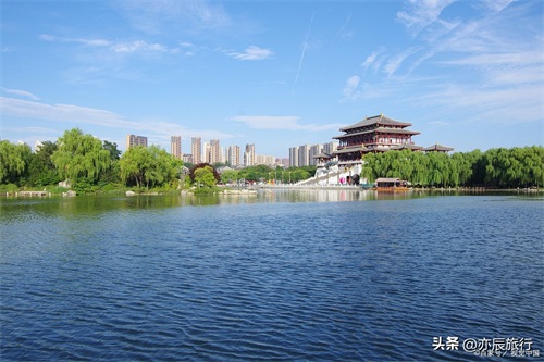 位于咸阳市渭阳中路的咸阳湖是一个宜人的湖泊。湖水清澈见底,湖岸绿树成荫。游客可以在湖边散步,欣赏湖光山色,还可以参加划船和钓鱼等水上活动,享受清凉的夏季。
