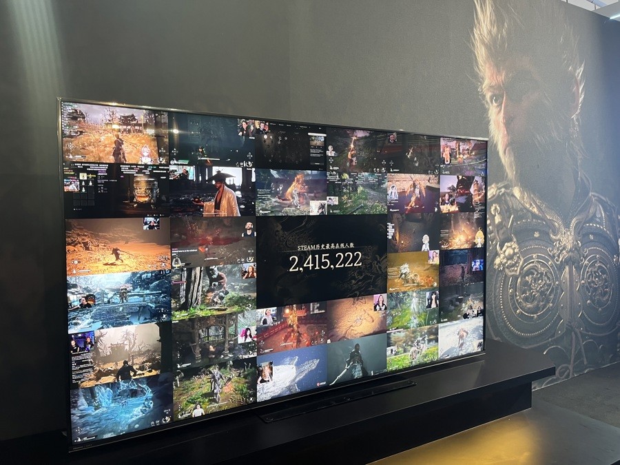 路人看热闹,玩家看门道。100寸的巨大屏幕上显示着不同玩家的在线录屏画面,最中间的一行字赫然写着:STEAM历史最高在线人数2415222。STEAM玩家清楚这个数字足以令平台服务器一度崩溃。