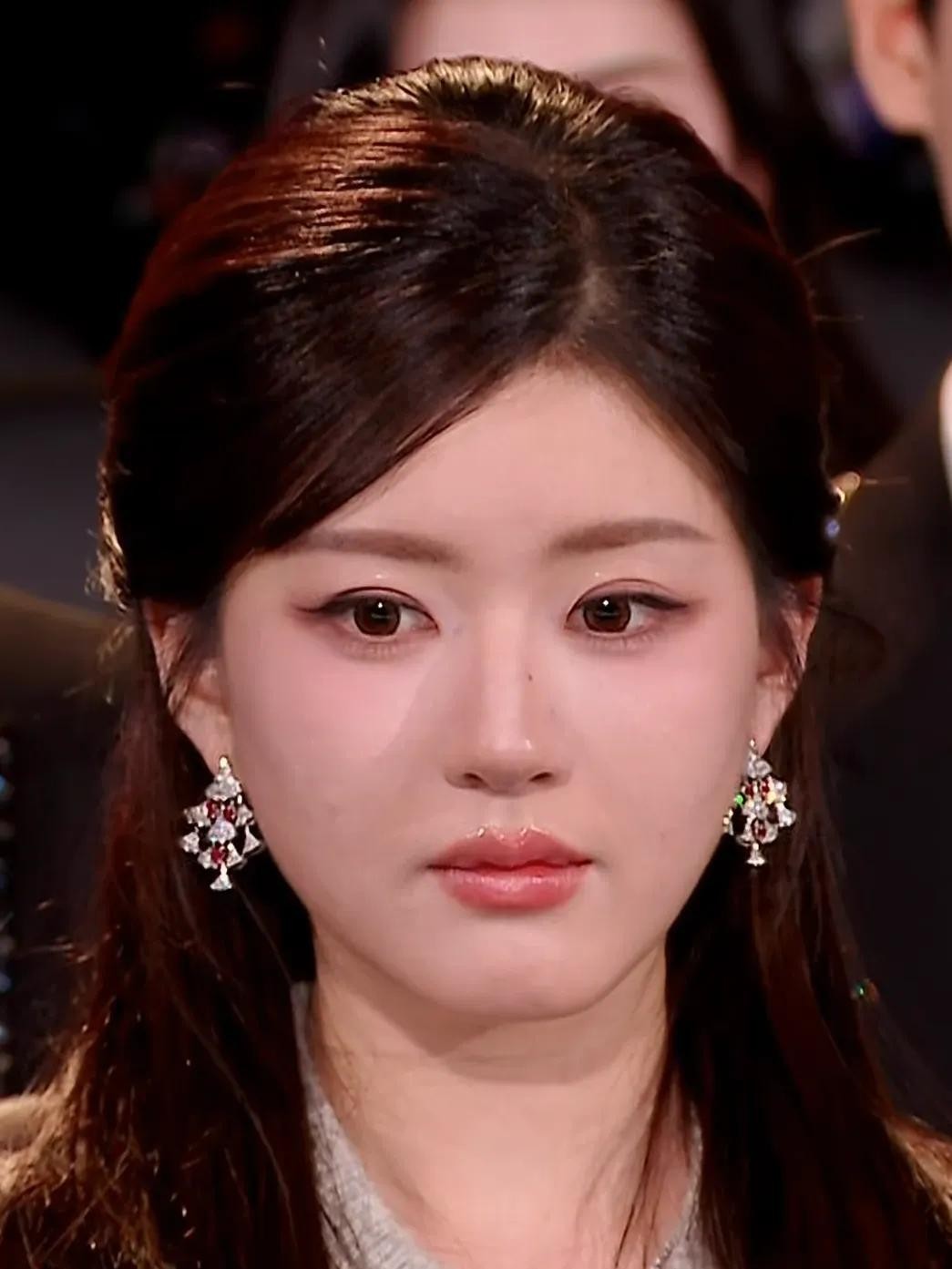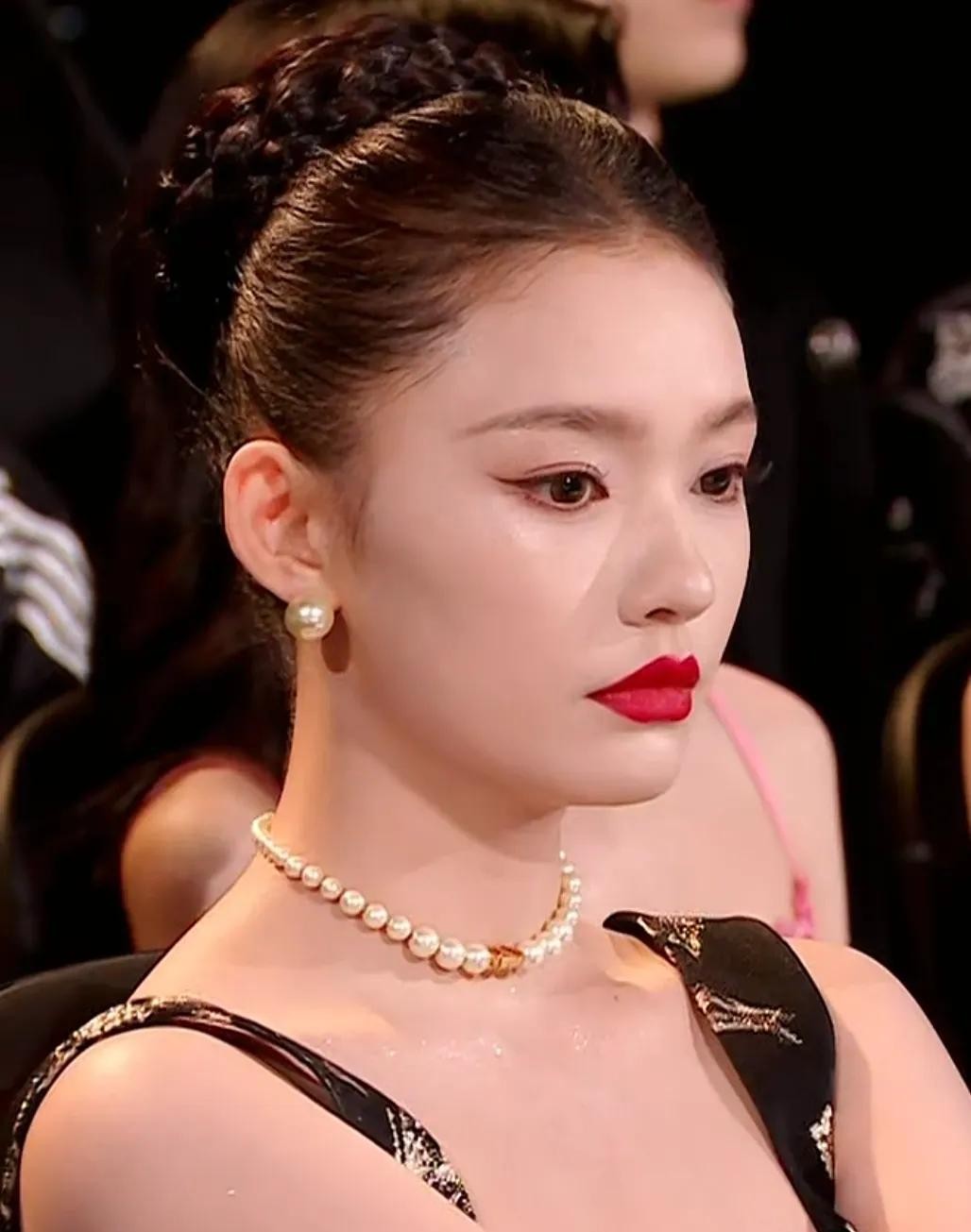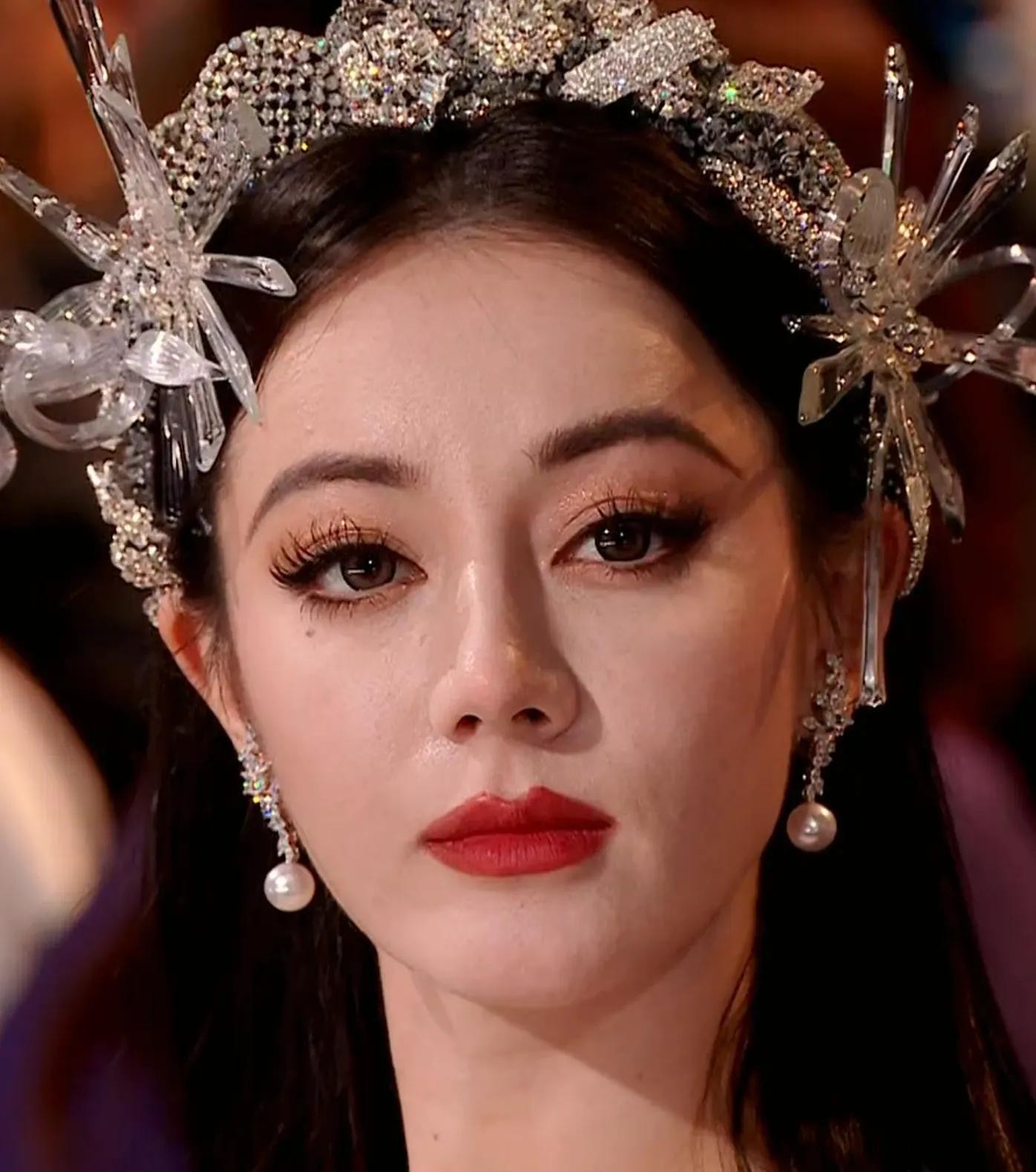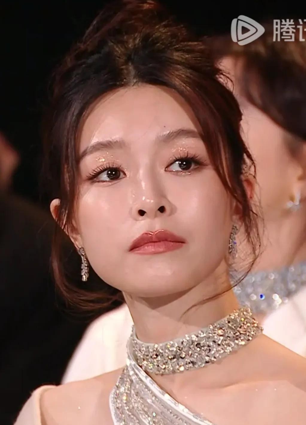 内场还有一位眼睛超级大的田曦薇,宛若一个仿真度超级高的大眼机器人。在面无表情的状态下看起来非常的冷漠和呆板,但是眼睛却大到像在瞪人一般十分抢镜。不知道是妆容的问题还是表情管理的问题看起来有点奇怪。