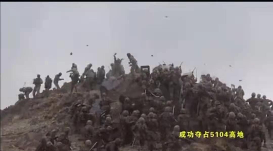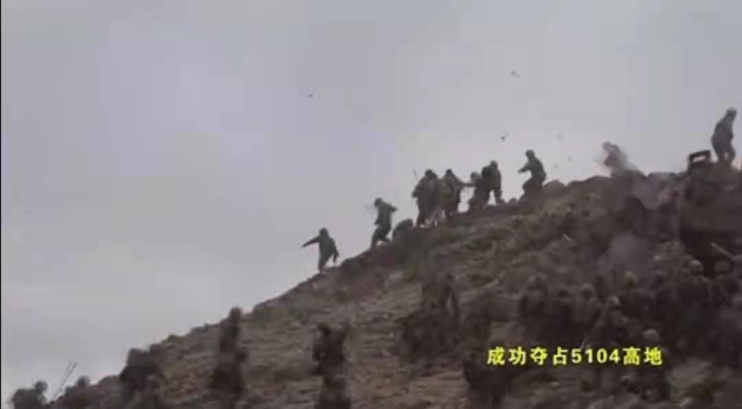 近日,一段解放军战士协作攻坚名为“5104”高地的视频爆红网络。视频中,面对高地上的印军,解放军部队兵分两路,向山顶进行攻坚。由于不能使用枪械,双方的武器主要是手中的木棒和随地的石块。主攻方向上,解放军前排战士手持盾牌,掩护身后战友向山顶迅速突击推进,在盾牌掩护下,后排战士抄起地上的石头,组织“齐射”,同时将大石块像手雷一般的往山顶砸过去。趁印军难以招架,前排部队乘势开始登顶,手持棍棒的战士即将与印军展开肉搏时,第二路迂回包抄的解放军,开始对印军后路及侧翼进行围堵。眼见要被“包了饺子”,印军顾不得许多,拔腿就跑。解放军一套组合攻坚,行云流水,镜头最终定格在解放军战士从山顶俯瞰印军仓皇逃窜的画面上。而除了网上流传的这段视频外,据印度《打印》(The Print)新闻网也报道,解放军确实占据着5104高地,推翻了以往印度媒体谣传的“印军占领5104高地”的谣言。