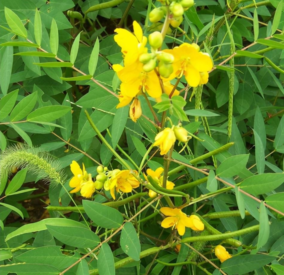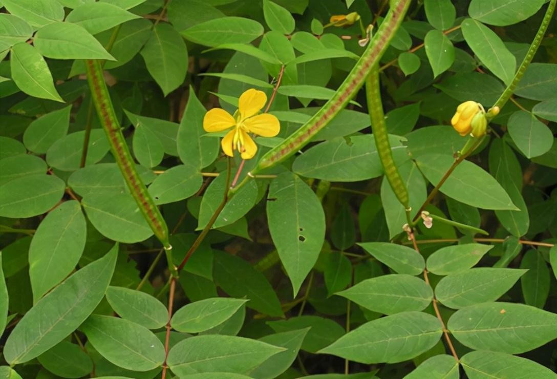 这种植物在民间的俗称也比较多,比较常见的就是野决明、决明子、野扁豆、羊角豆、狗屎豆等等。并且如果你对它更深入地了解,还会发现它有一个非常霸气的外号——蛇灭门。