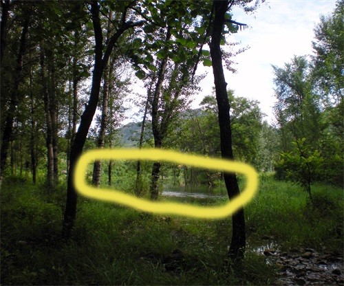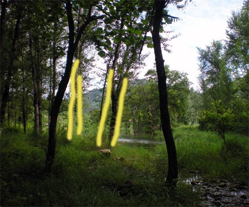 图三,黄线部分的树对主体物遮挡的较多,需要处理