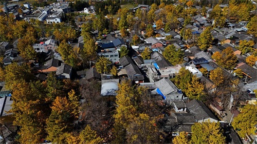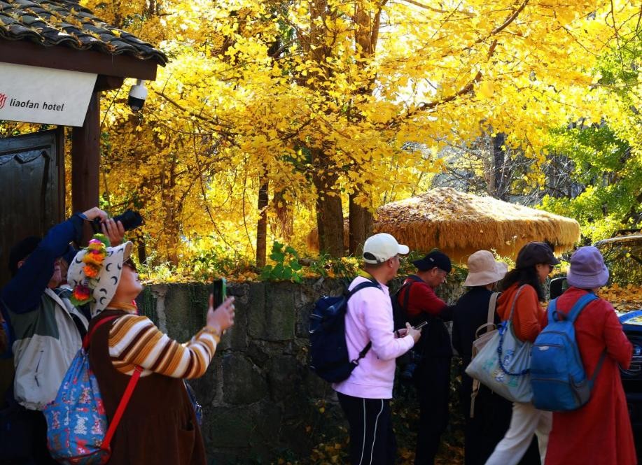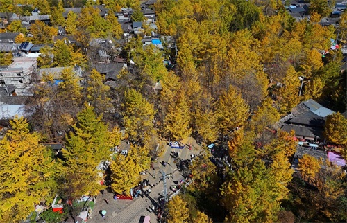 阳光透过枝叶,洒落一地的金色光斑,仿佛大自然赋予的碎金。微风轻拂,银杏叶沙沙作响,与村子里的炊烟、白墙黑瓦交织成一首宁静的田园诗。这里的每一步,都是与自然的亲密对话,每一次呼吸,都能感受到岁月的沉淀与自然的馈赠。