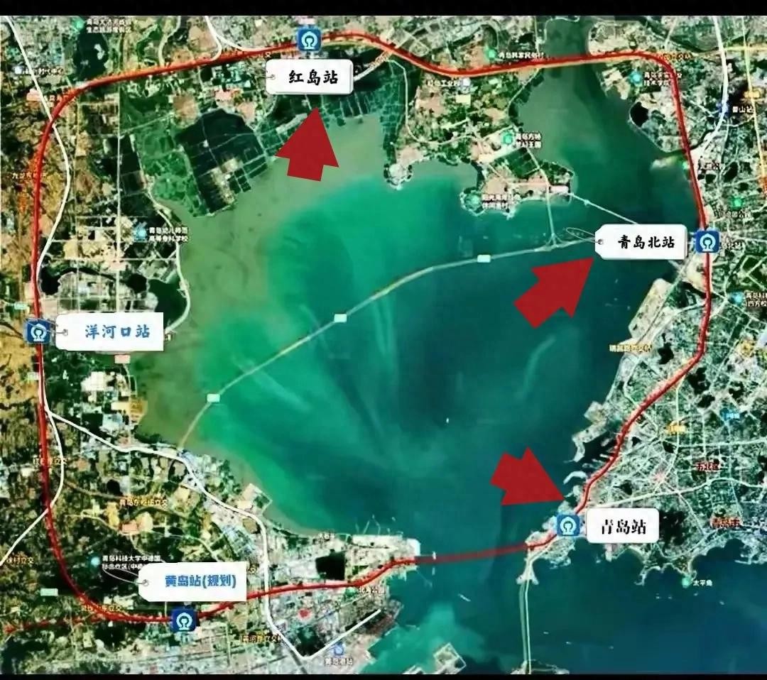 啥意思呢?就是说:如果以后"胶州湾过海铁路"建成,那么从青岛西站流入的外地人口,还未到红岛站就将提前被东引过海,红岛站将被置于无用。