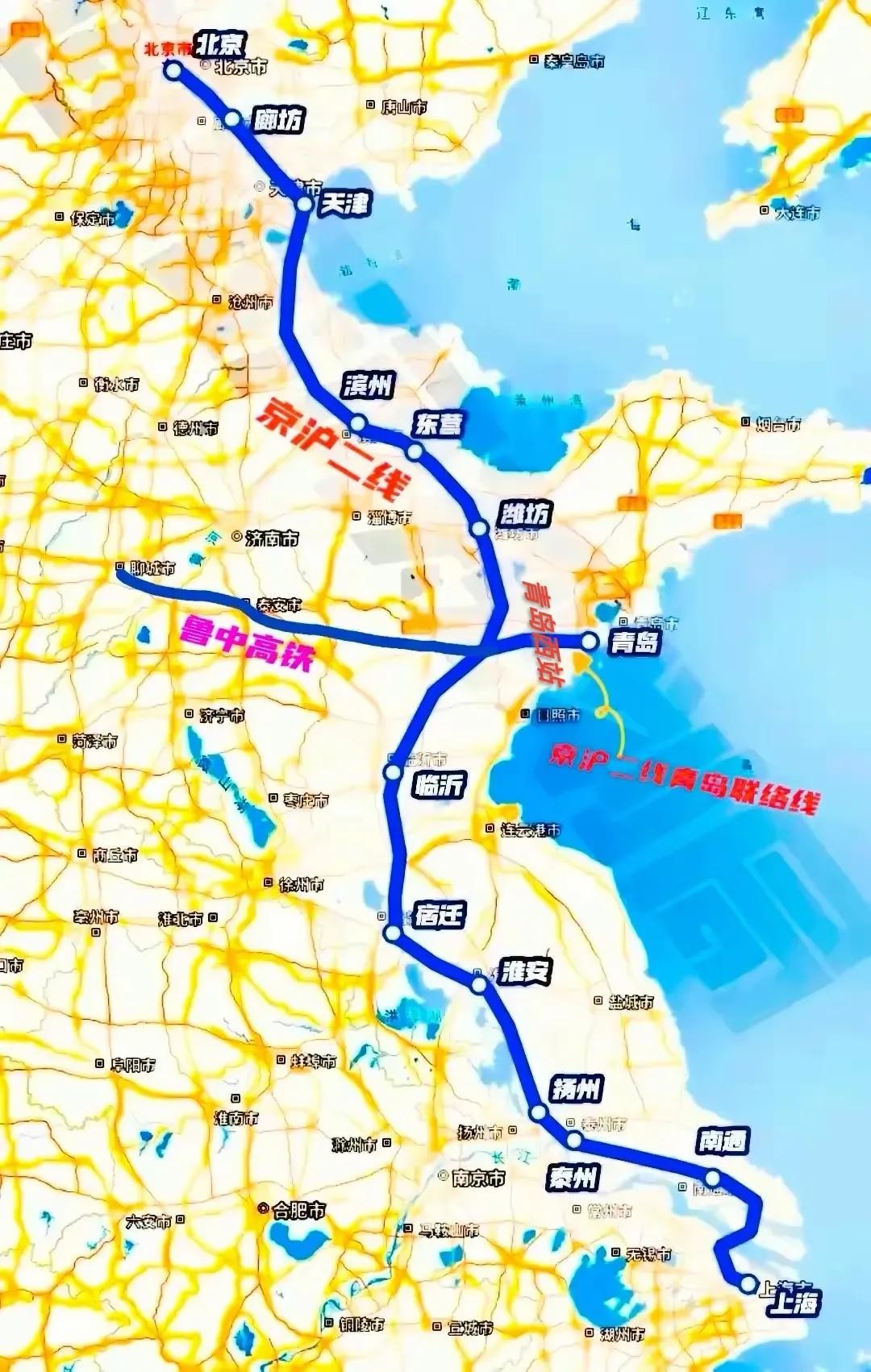 胶济线于1904年通车,已历120年。当然胶济线序列不止胶济线、还包括济青高铁。总之就是串连青-潍-济的那条"青济海陆发展主轴"。也被称为山东之腰、山东的金腰带。