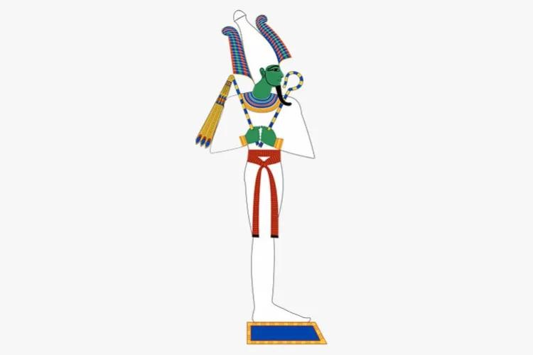 ◎〉‘奥西里斯’戴着上埃及的白色王冠,蓄着假胡须,手里拿着权杖,双臂交叉。