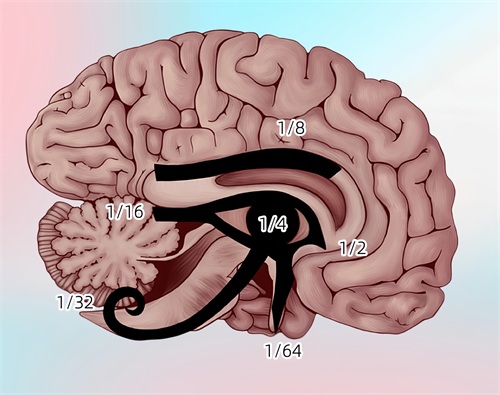 ◎〉1/2区域嗅觉和嗅觉三角形之间的联系,是嗅觉皮层的一个区域,负责处理嗅觉信息。◎〉1/4区域瞳孔和丘脑之间的粘连区域,是视神经和丘脑之间的连接,共同参与视觉信息处理和调节。◎〉1/8区域眉毛和胼胝体之间相似形状,都是由神经纤维束组成的,在大脑中起着重要的连接作用。◎〉1/16区域听觉和前颞横叶之间的三角形形状,是听觉皮层的一个区域,负责处理语言和听觉信息。◎〉1/32区域卷曲线和味觉通路之间的联系,是因为舌头上的味蕾可以感受到不同的味道,并将信息传递到大脑的味觉皮层中进行处理。◎〉1/64区域泪液和躯体感觉通路之间的联系,是因为泪液可以通过鼻腔和喉咙进入身体,并刺激相应的感觉神经。
