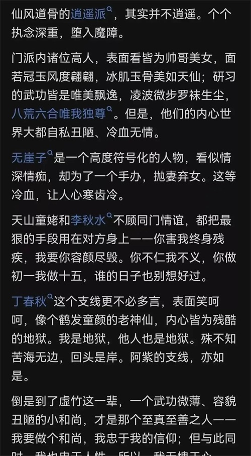 当然,还有其他令人津津乐道但容易被误解的人物:比如段誉,他对王语嫣痴迷专注,从某种程度上体现了他单纯执着的一面;岳不群表面君子但暗藏阴谋;左冷禅练葵花宝典却未能完全超越。这些错综复杂的人物关系,使得金庸小说总能带给读者无限遐想和讨论空间。