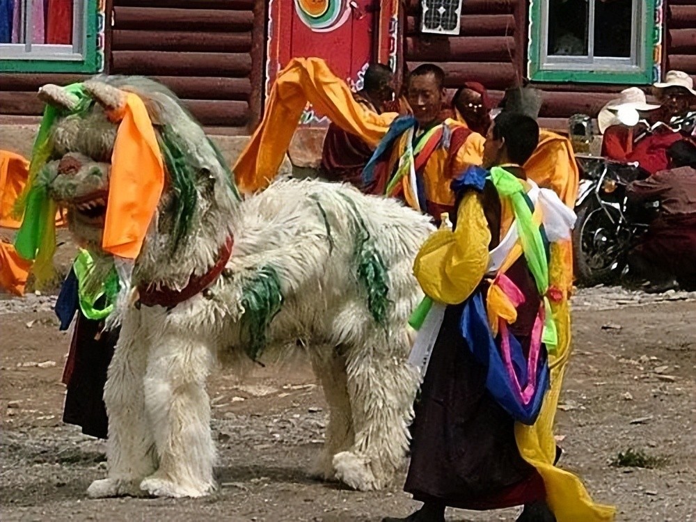 这些石狮并非简单的装饰,它们是藏传佛教中的一种重要象征,代表着佛的智慧与力量。在一些宗教节日里