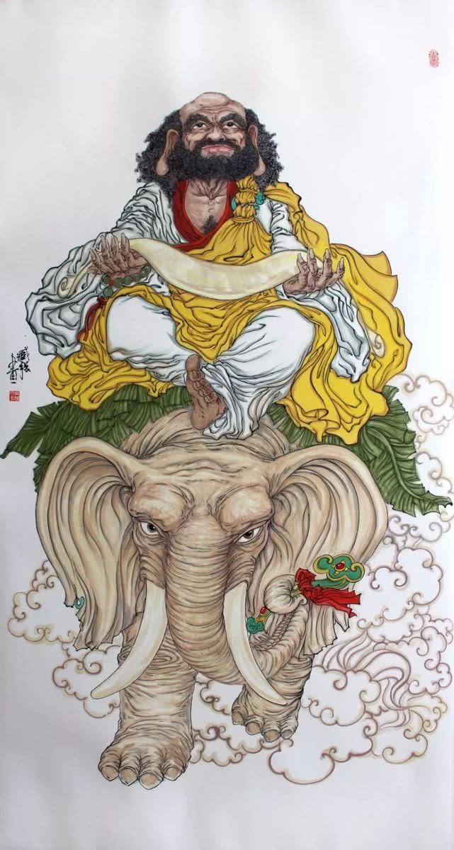 骑象罗汉,全称迦理迦尊者。他原为驯象师,后出家修行而得正果。象在佛教中象征着权力与身份,他骑象尽显佛法高深。骑象罗汉寓意着道路平坦,象征着在修行道路上,只要坚定信念,就能顺利前行。