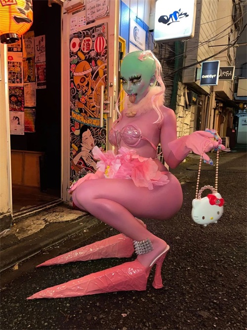 其拍摄的一段《宇宙人的第一班列车》短视频中,Sunnybunny与朋友都画着夸张浓艳的妆容和穿着奇装异服,仿佛是“外星人”降临人间。