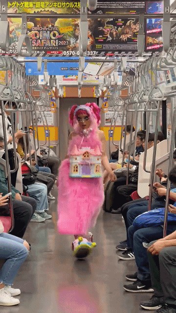 瞳孔地震!日本网红为火半裸出街,电车上奇葩举动惊呆路人~