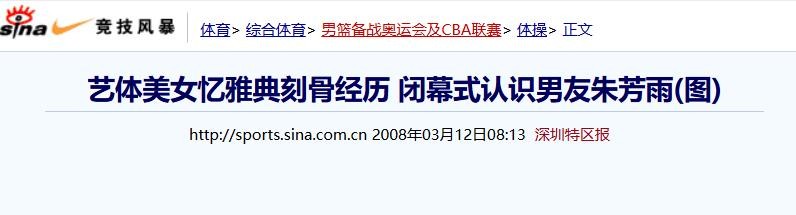 《艺体美女忆雅典刻骨经历 闭幕式认识男友朱芳雨(图)》 深圳特区报