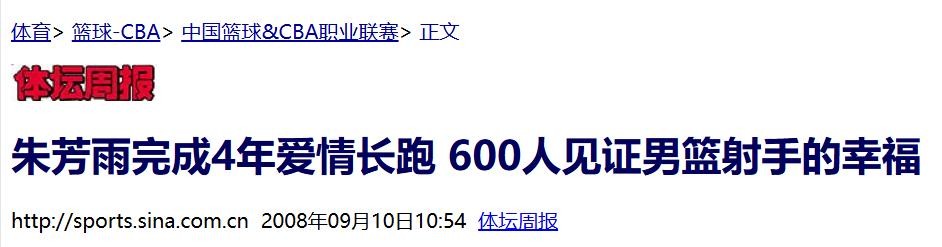 《朱芳雨完成4年爱情长跑 600人见证男篮射手的幸福》体坛周报