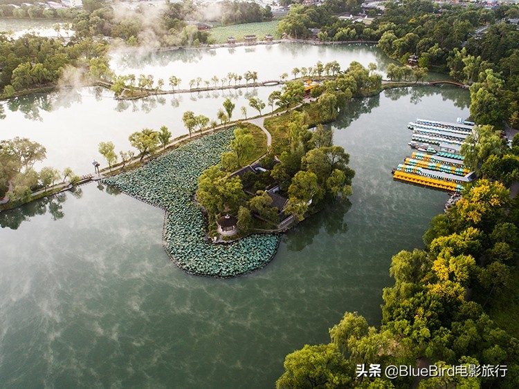 月亮湖历经多次改造,植被环境大变样,几乎很难看得出当年剧里拍摄的样子。