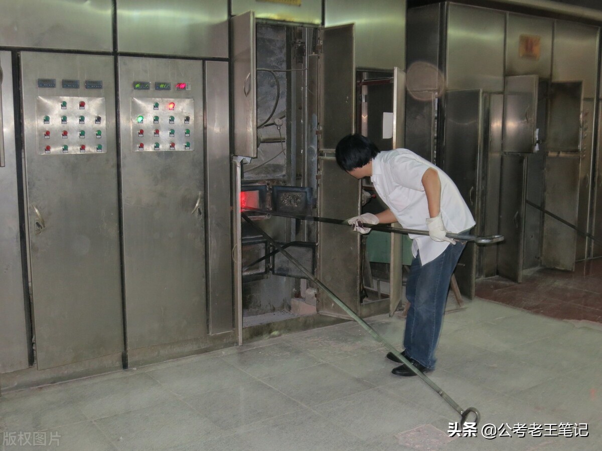 这个岗位上班时间不固定,也可以说没有准确的时间。因为半夜火化遗体是常事,有时候是半夜送来遗体,接到电话后就得上班,然后白天回去睡觉。整个火化过程在一个小时左右,这期间需要凭借经验和技术控温和调节设备,所以女生报考这个岗位的确实比较少。