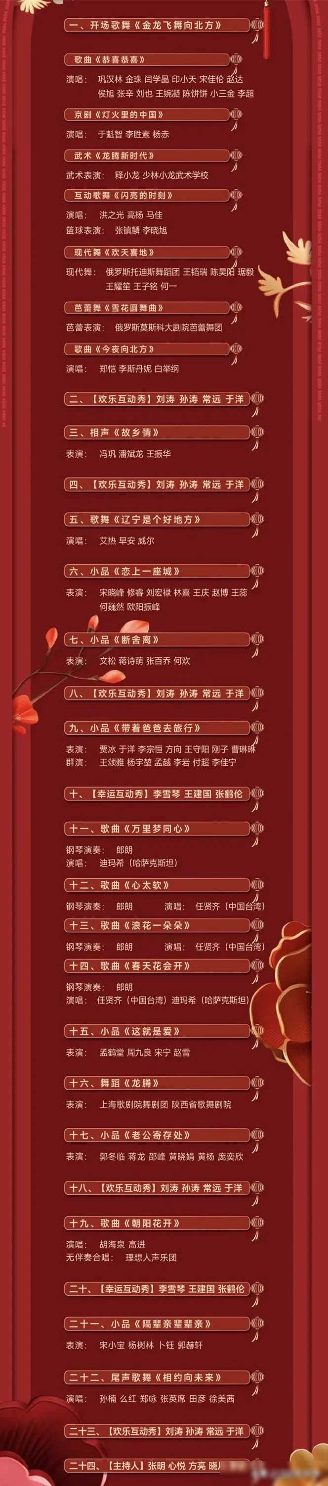 今晚辽视春晚节目单热乎出炉!马上发给大家,一共24个节目,语