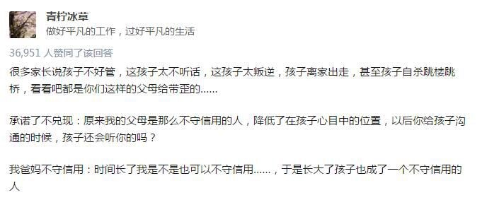 话题瞬间引爆网络,吸引到一万多条回答,大部分都是批评这位爸爸如果不守承诺,那么就不要怪孩子将来也成为一个不守信用的人。