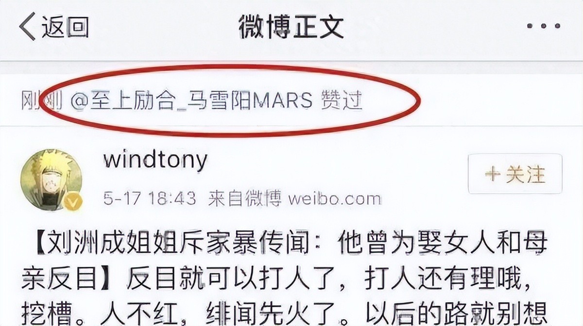 刘洲成在被爆出家暴后,马雪阳曾两次点赞相关新闻,