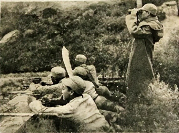 1937年11月,八路军一一五师在广阳战斗中的阵地,拿望远镜者是三四三旅旅长陈光。