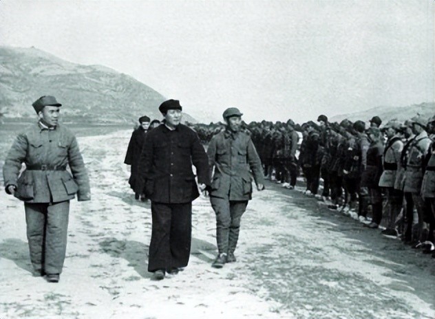 1944年11月1日,毛主席、朱总司令在王震司令员陪同下检阅以三五九旅为主组成的八路军南下支队。