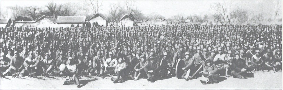 1943年3月25日,新四军三师八旅在反“扫荡”中取得阜宁陈集战斗胜利。图为战士们在缴获品前留影。