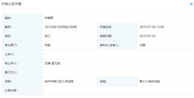 浙江法院公开网查到孟凡斌王婧