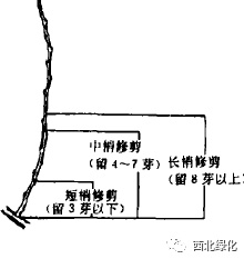 注:树势强的品种及密植、篱架栽培的,以短、中梢修剪为主。萌芽力弱、结果性能差的品种及稀植、棚架栽培的,以中、长梢修剪为主。