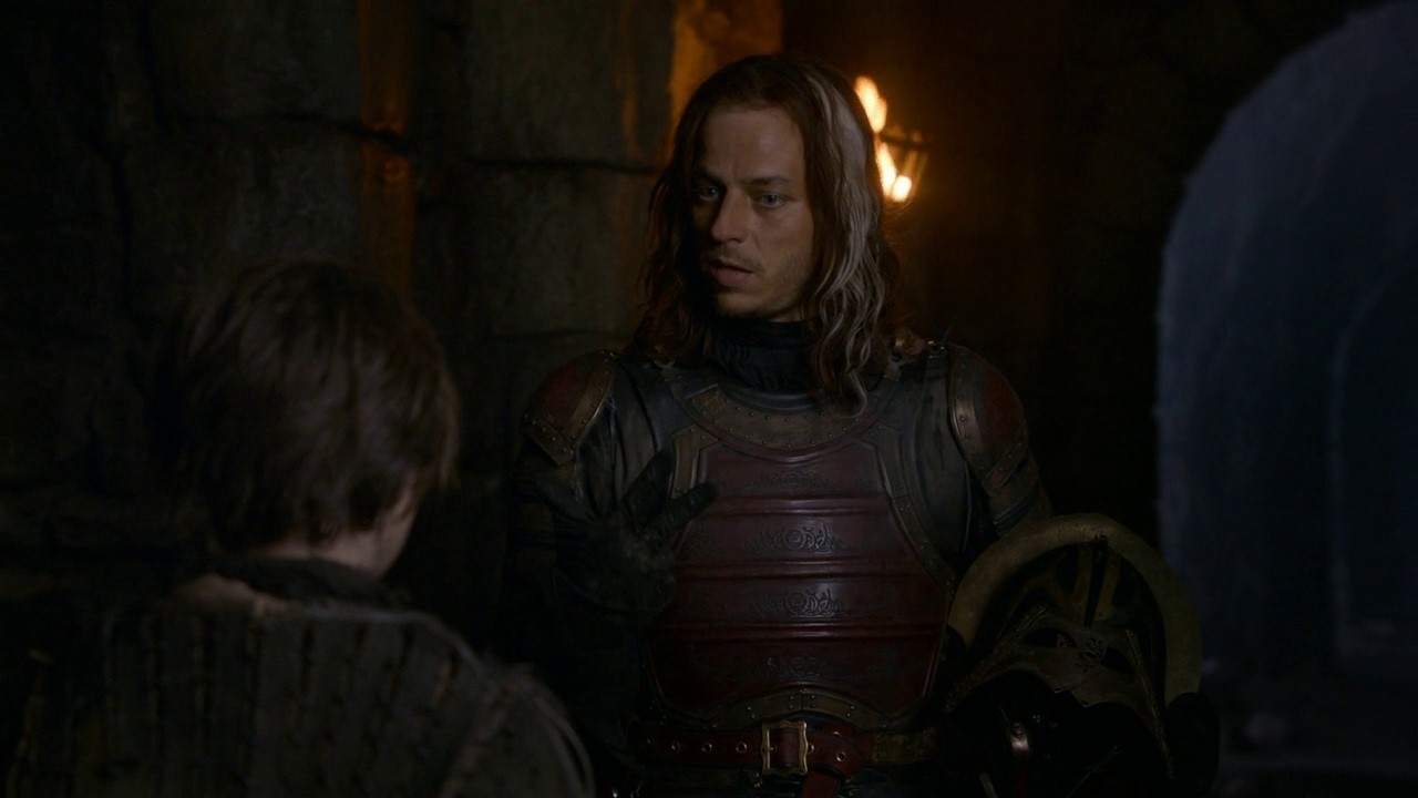 泰温·兰尼斯特来到城堡,他把艾莉亚作为侍酒带在身边。在一次军事会议上,艾莉亚在兰尼斯特家族的士兵中看到了贾昆·赫加尔,很明显,贾昆已经转投了另一方。
