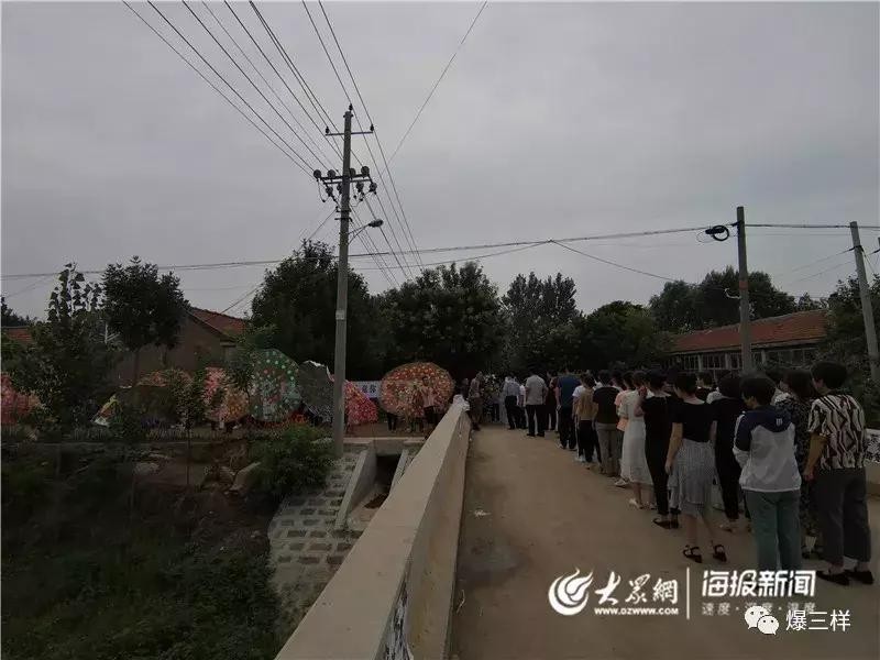 30日下午14时,在褚集村村口的柏油路边,停满了从各地赶来的车辆,花圈从村口一直延伸到了伦学冬的家里。告别仪式现场站满了从各地赶来送伦学冬最后一程的人们。