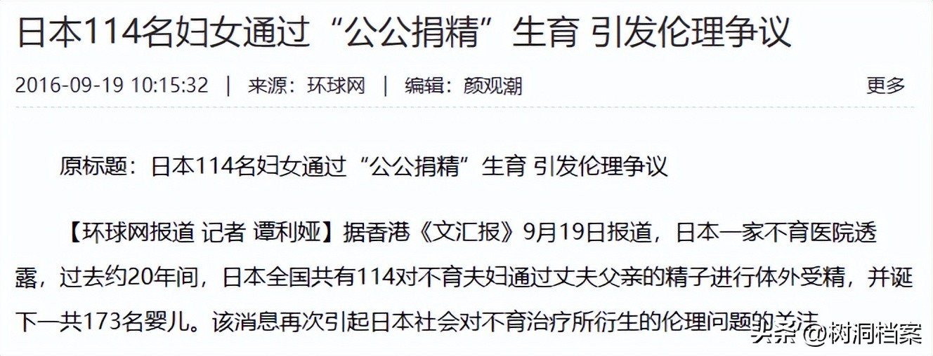据日本的媒体采访日本当地的不孕不育医院得知,在1996年到2016年期间,日本已经因为丈夫的精子无法正常怀孕,而选择使用自己公公的精子来受孕的家庭。