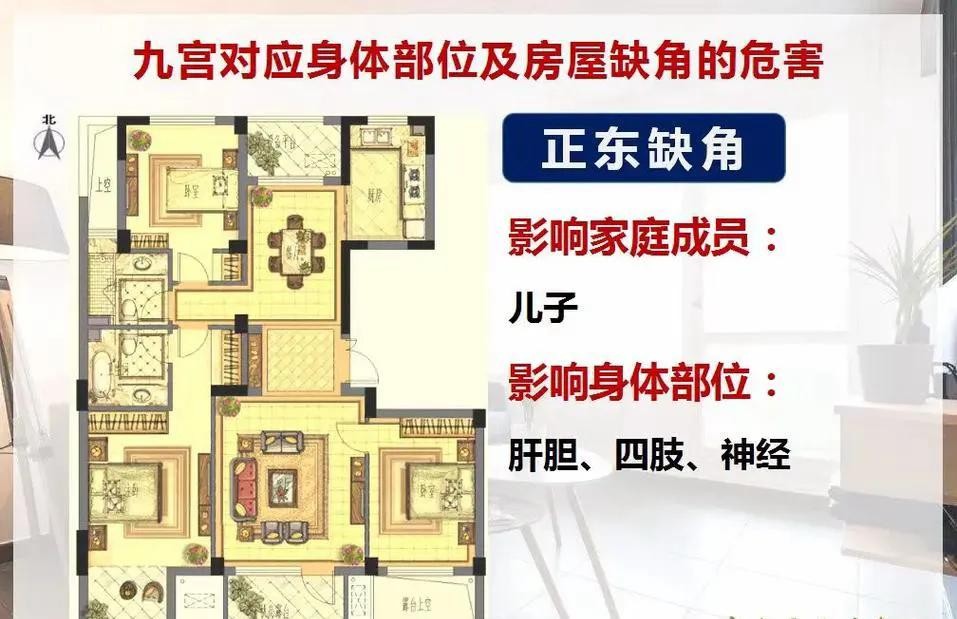 正东方缺角,可能会影响长子的肝胆健康、腿脚发育,甚至影响他的身高和阳刚之气。