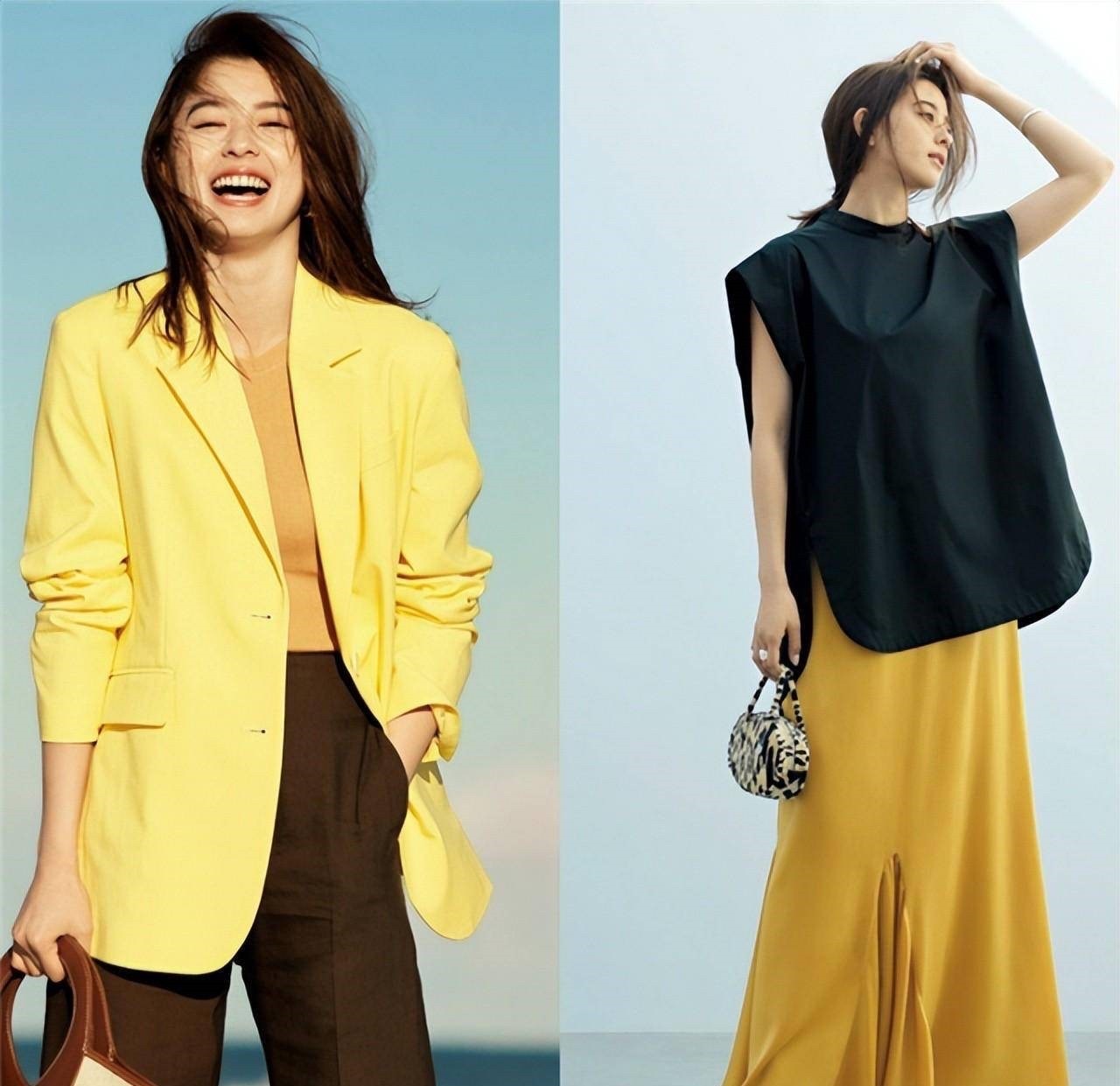 其实色彩的运用并没有那么难,我们只需要掌握好主次分明的关系就够了,就好比再搭配黑色服装的时候,可以跟亮色系的单品进行组合。比如明黄色西装+棕色西装裤,就会非常高级复古;黑色无袖衬衫+黄色半身裙,轻松穿出又美又飒的效果。