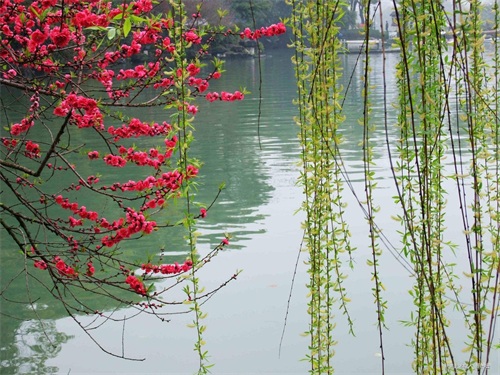 春天最显著的两个特征就是百花齐放和翠柳依依,这些都是诗人的最爱,是诗中的常客。