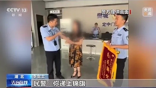 近日,湖北襄阳警方破获了一起诈骗案,并悉数追回了10万元被骗资金。当报案人李女士特意带着锦旗到派出所感谢警方办案神速时,意外的一幕发生了,民警收下锦旗,却给了李女士一副手铐。这到底是怎么回事?