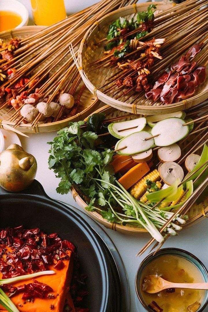 特点:火锅的姊妹篇,各种肉串和蔬菜串在竹签上,放入浓郁的汤底中煮熟,再淋上秘制的调料,口感丰富。