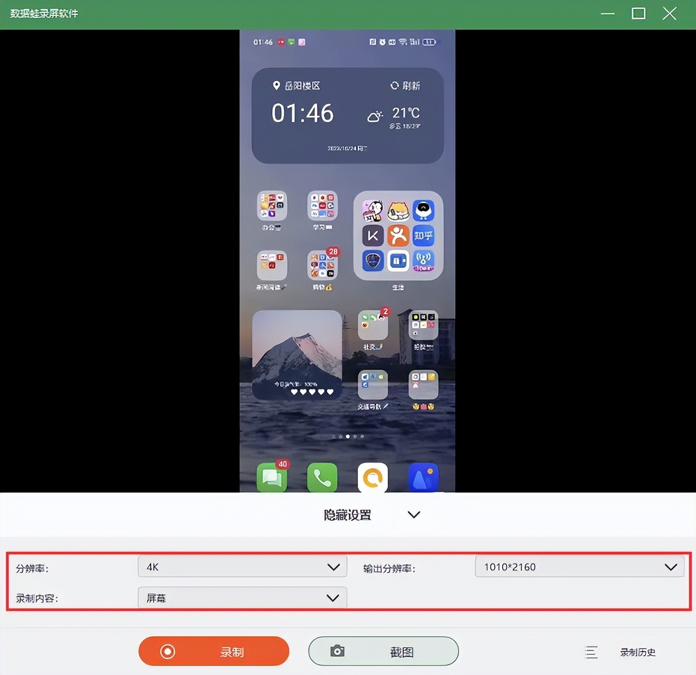 它可以根据个人需求,灵活设置录屏参数,例如录屏格式、录屏输出质量、录屏帧率等。下面是使用软件录制oppo手机的操作步骤: