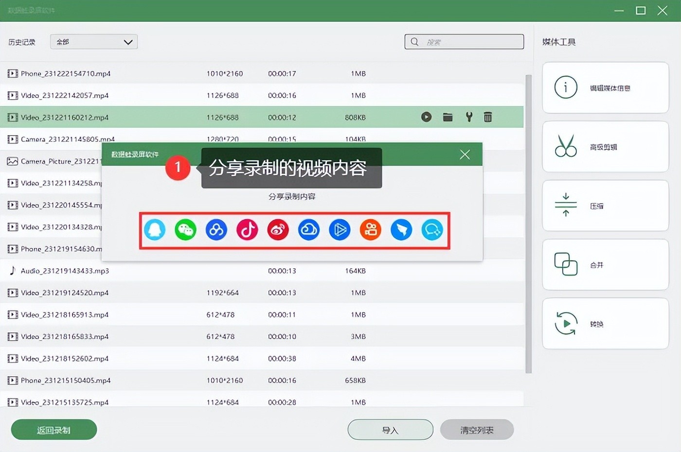 第4步:如果您想快速将视频分享到其它媒体平台,可以来到历史记录页面,选中需要的视频进行分享。