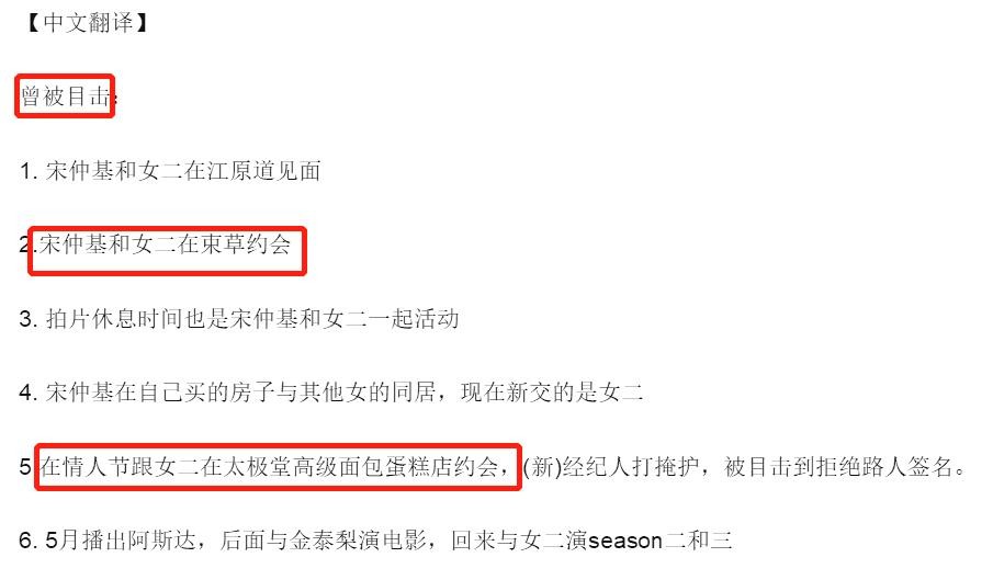 以下为韩网原贴,该帖子已经禁止回复,内容大伟私生饭爆出的宋仲基与女方存在不正当关系的证据。
